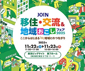 | 2025年11月22日(土)〜23日(日) JOIN 移住・交流&地域おこしフェア 開催形態:対面 開催地:東京ビッグサイト(東京・有明) 主催:公益社団法人ふるさと回帰・移住交流推進機構 |