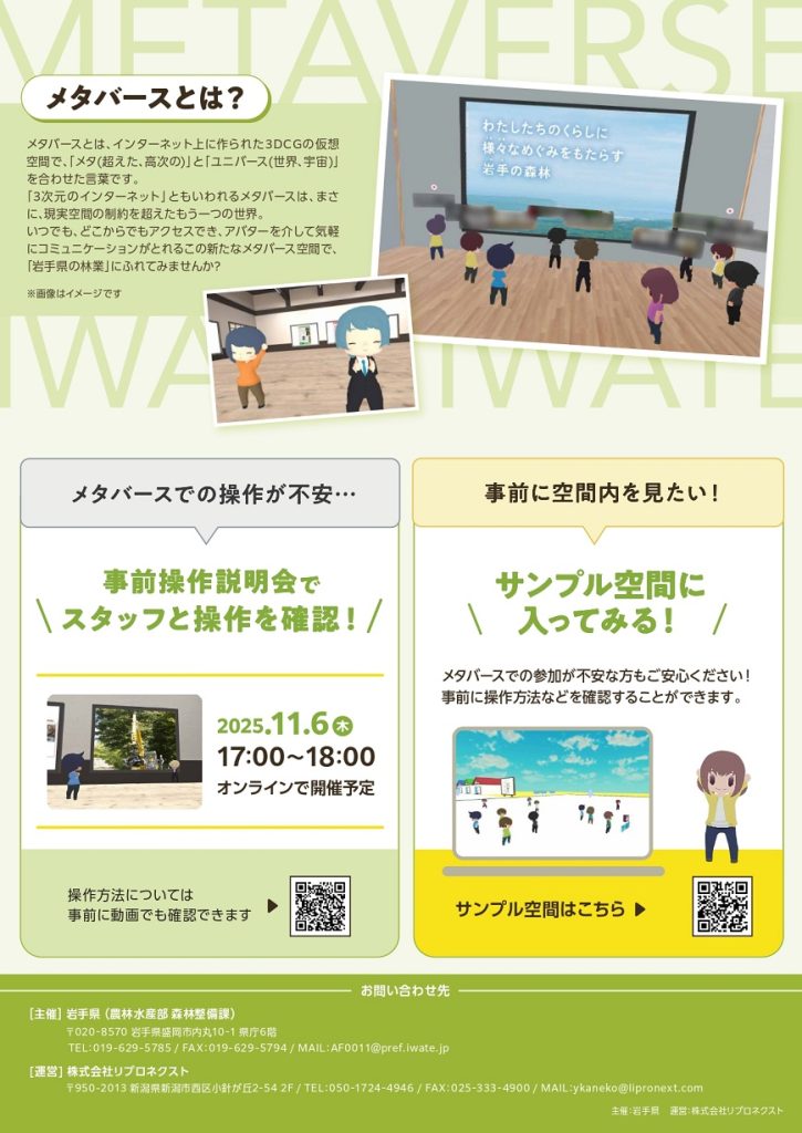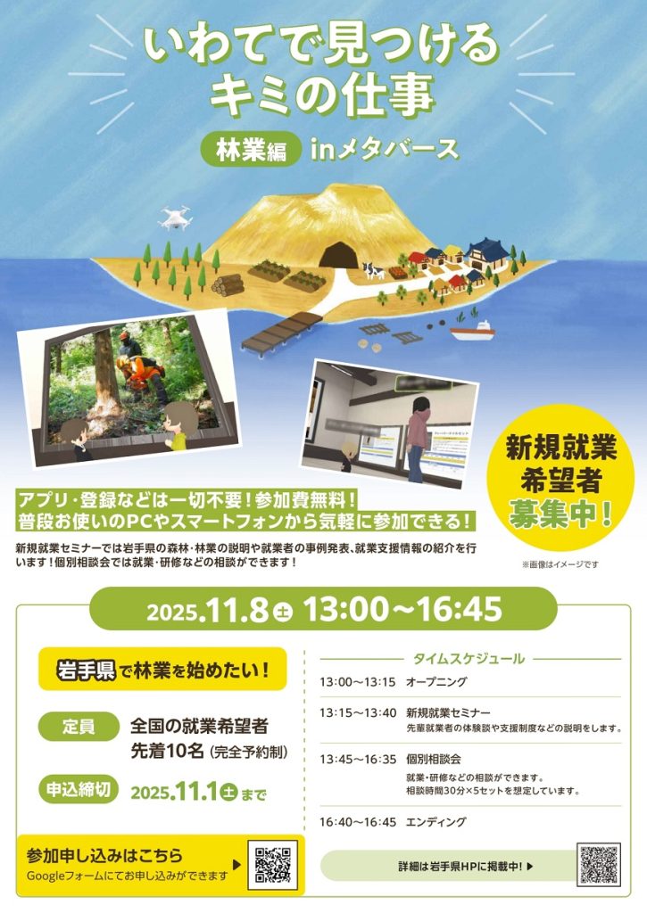 【11/8(土)@メタバース(仮想空間)】いわてで見つけるキミの仕事 林業編inメタバース