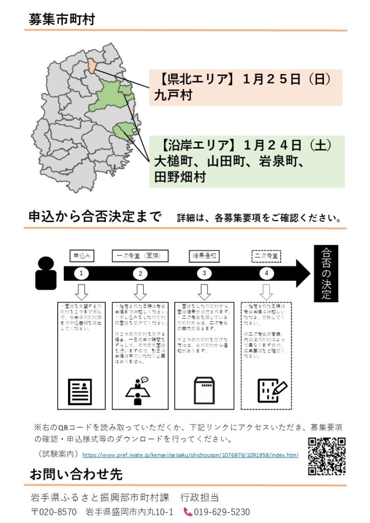 【1】沿岸エリア(大槌町、山田町、岩泉町、田野畑村)の共同選考採用