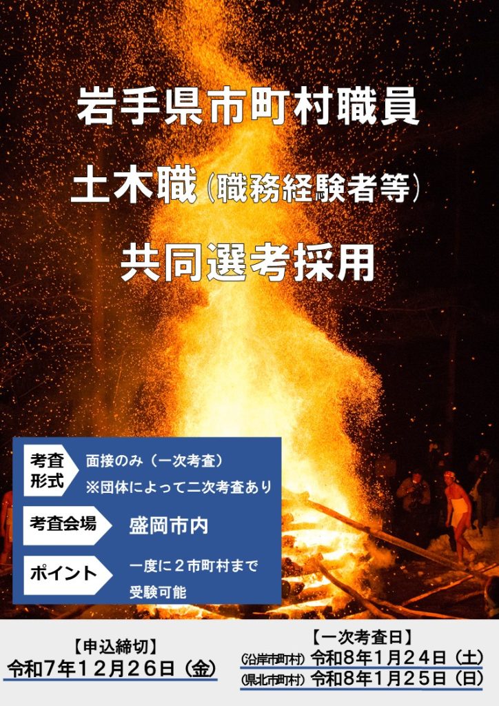 本採用は、岩手県内の県北エリアの市町村が土木職員を採用するために合同で行うものです。