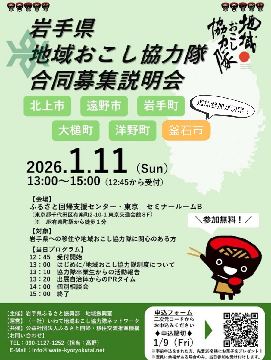 【1/11(日)@東京】岩手県地域おこし協力隊合同募集説明会