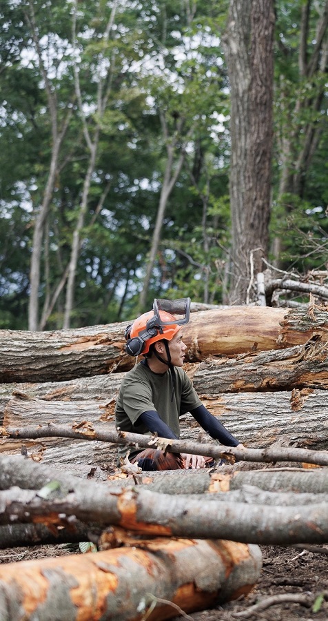 「研修生は、私のような社会人経験者もいて年代はバラバラでしたが、みんな打ち解け合い、一年間ずっと楽しかったです。扱う機材も樹種も多種多様で、基礎だけでなく実践的なことも学べました。」
